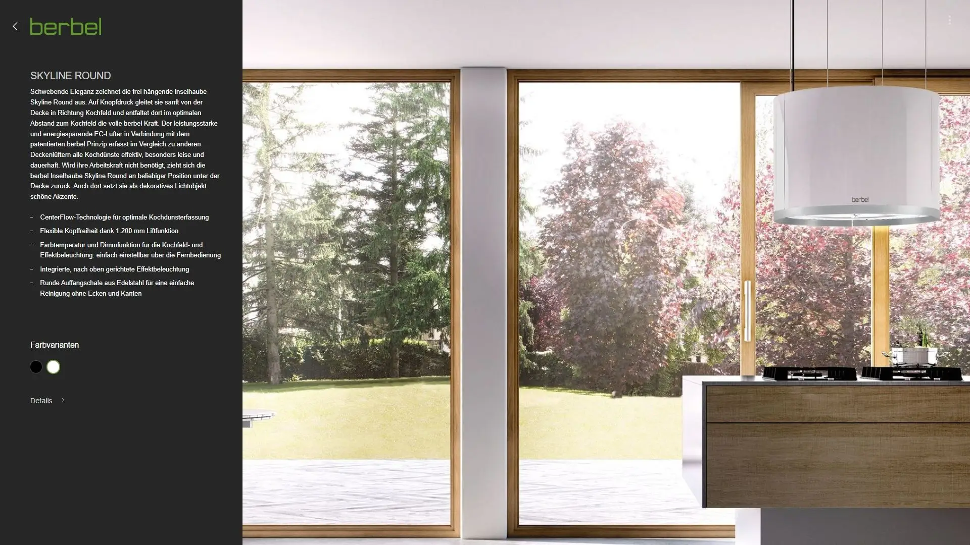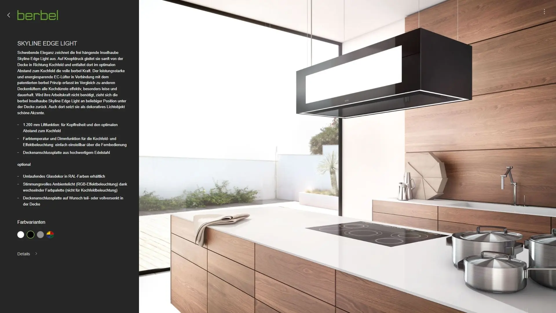 Das Tool digitalisiert den kompletten Produktkatalog und das Schulungsmaterial für den B2B-Vertrieb. Eine intuitive Navigation führt zu den jeweiligen Produktseiten der Dunstabzugshauben — mit allen Details und Konfigurationsmöglichkeiten.