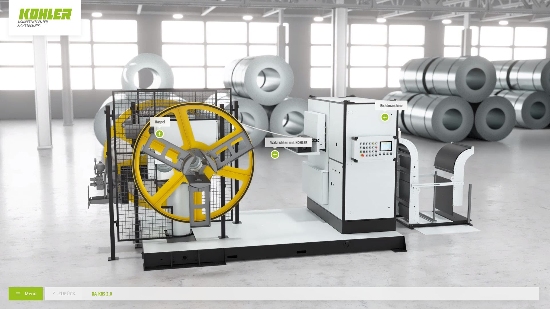 Für KOHLER Maschinenbau haben wir ein vertriebsunterstützendes Sales-Tool entwickelt, das die Richtmaschinen-Serie "Peak Performer" sowie weitere Anlagen interaktiv in Szene setzt.